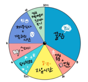 As in the example, fill in the following pie chart in Korean to specify your daily routines during the semester.